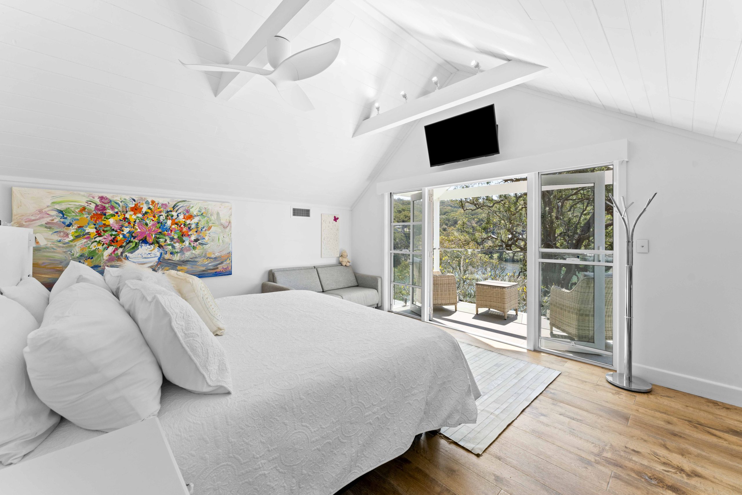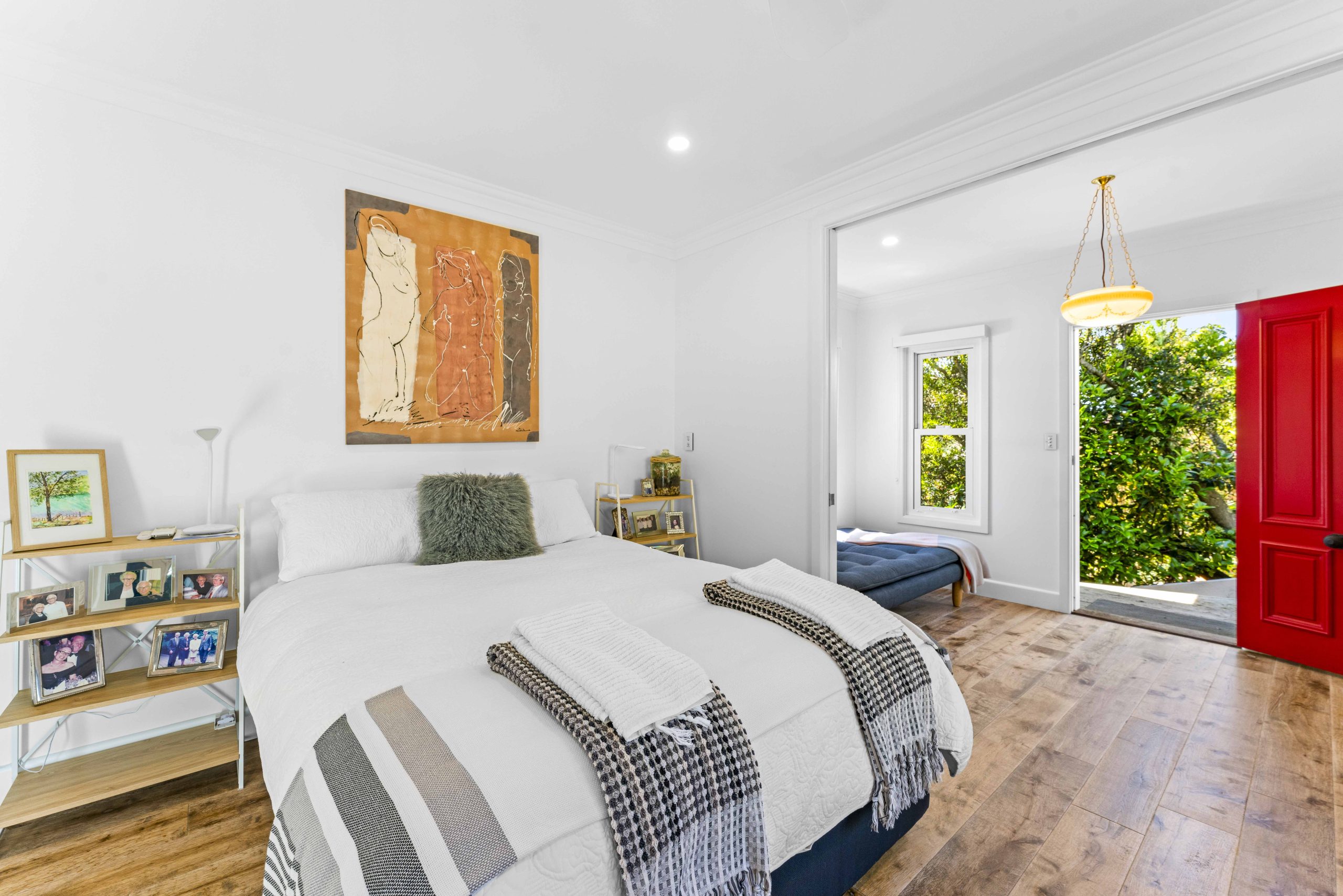 The block itself has been transformed into four manageable levels, each connected by landing junctions. Navigating these levels is a journey in itself, with both an inclinator and stone landscape paths and gardens providing access to each unique space. Stepping outside, the pool and outdoor entertaining area are a masterpiece of eco-conscious design. Eco plank decking, period tiles, and a carefully crafted bench top housing a pizza oven create an inviting space that harmonizes with the natural surroundings. Ascending to the top level, you’ll find the master bedroom, a private retreat that offers unparalleled views over the bay. This strategic placement ensures that the occupant can enjoy serenity and tranquillity, making the master bedroom a sanctuary within the home.