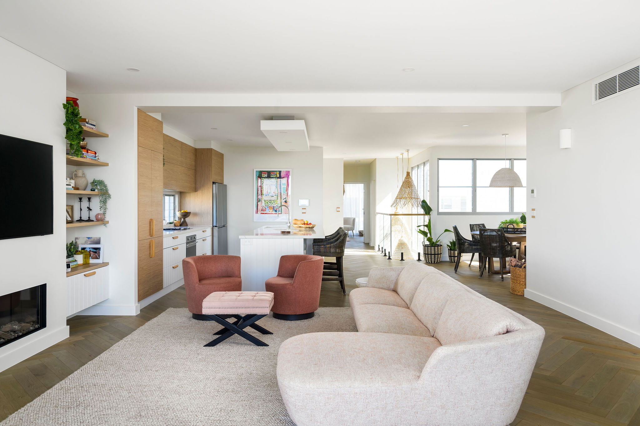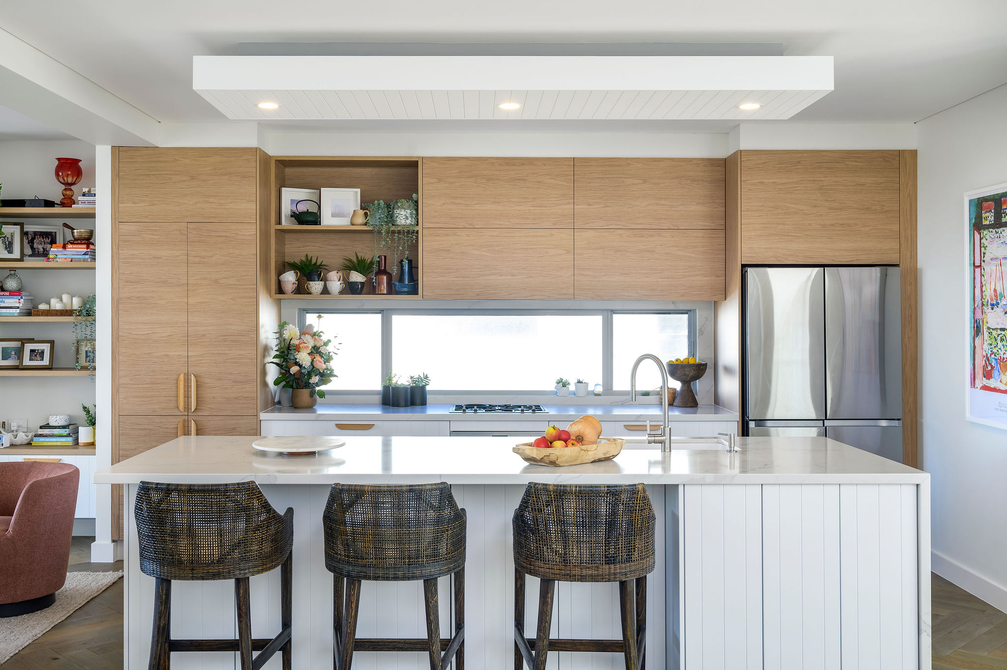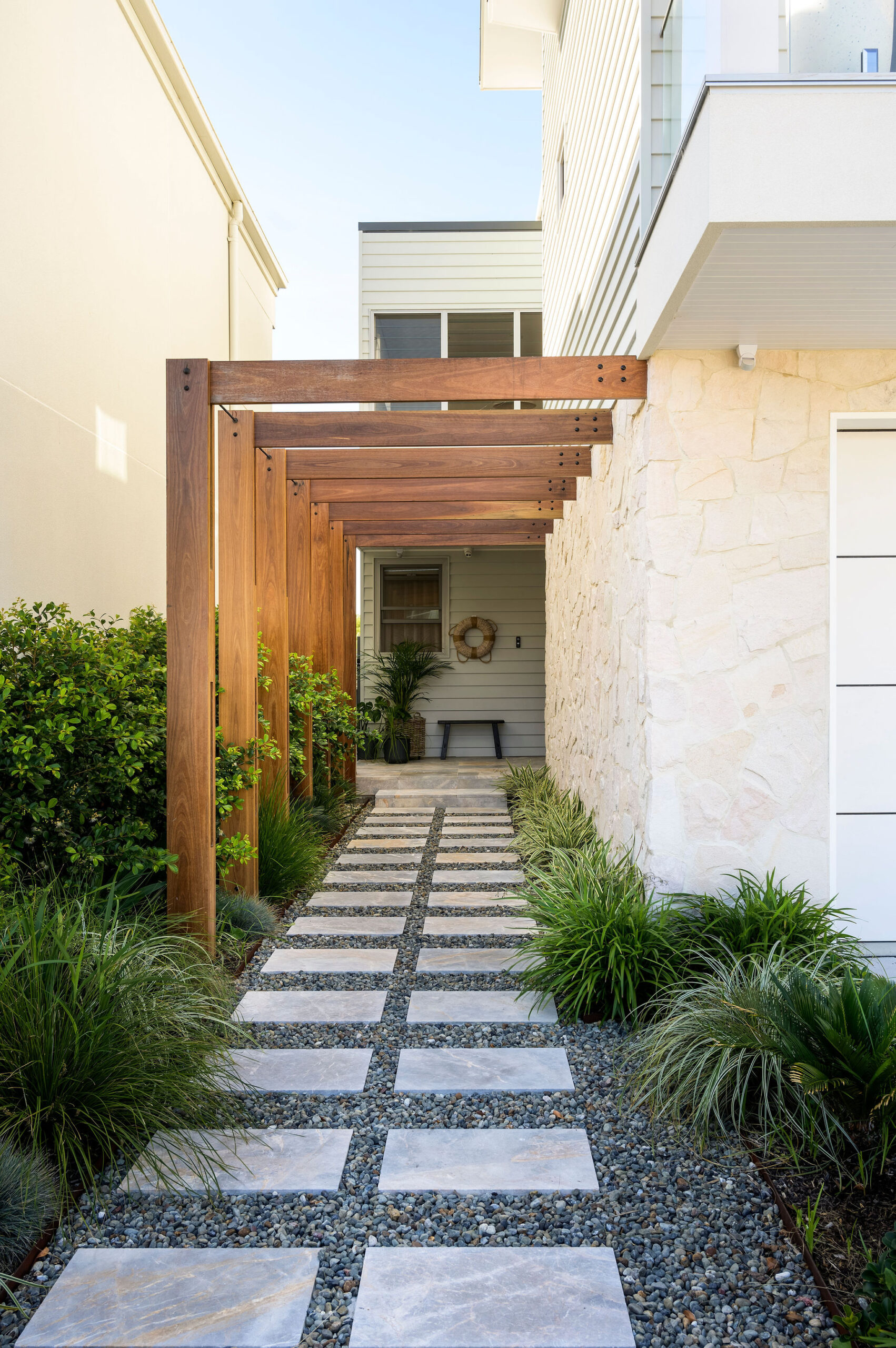 This three level home design became the perfect canvas for a relaxed luxury coastal retreat. All of the high quality finishes and materials have been carefully curated to suit our client’s taste and complement its surroundings. The most notable and texturally rich exterior finishes being the sandstone cladding on the Garage and Entry recycled hardwood arbour.