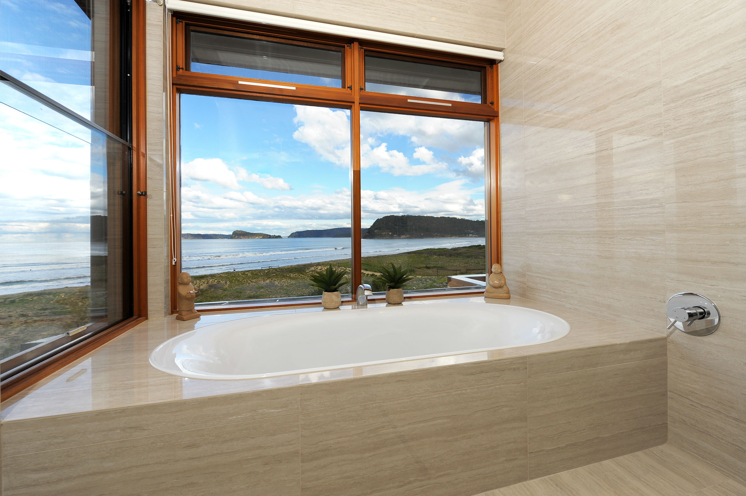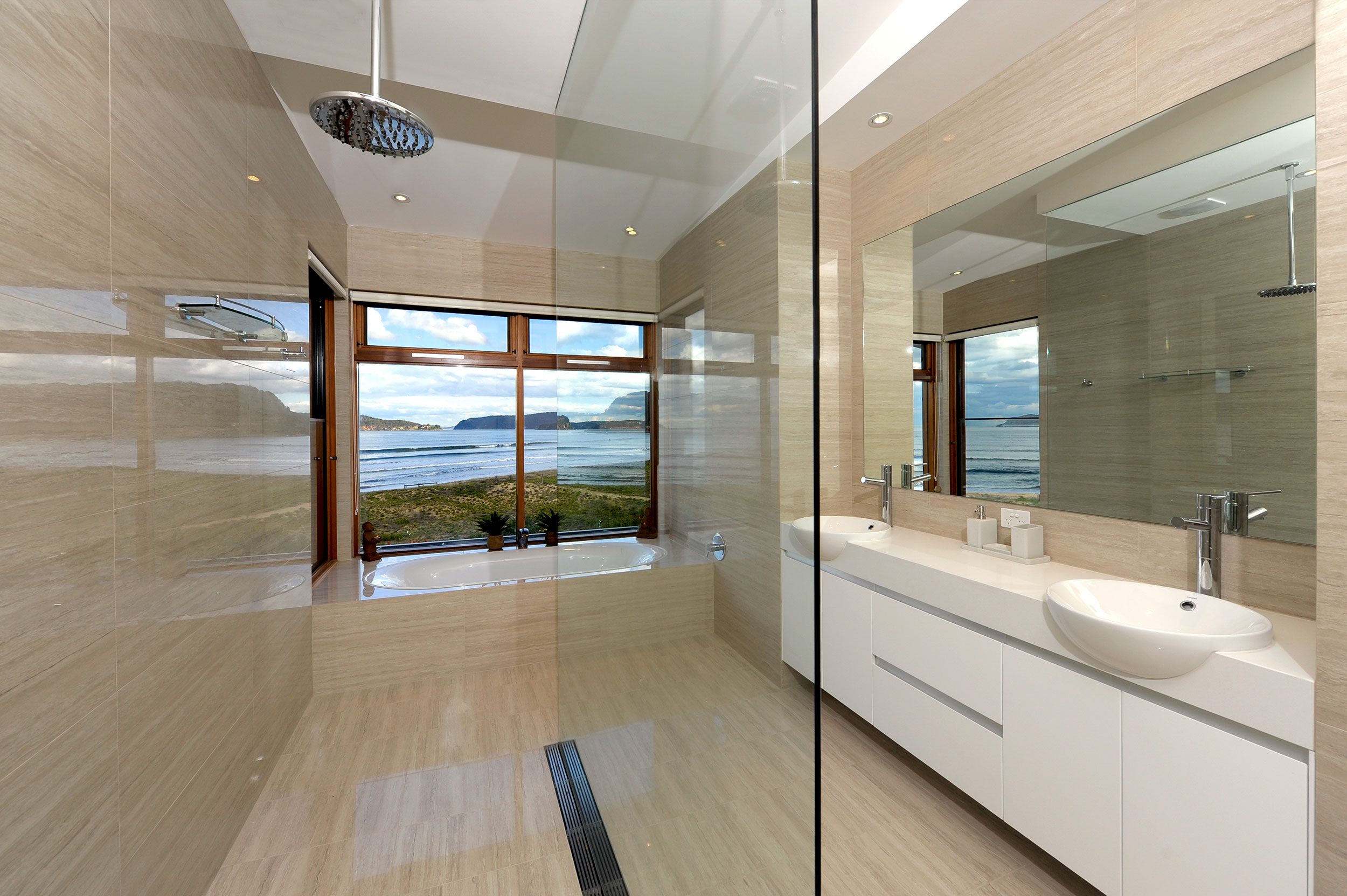 Lan Yue ge is a soft line Contemporary home which takes full advantage of its extensive Central Coast Ocean views over Lion Island to Pittwater.