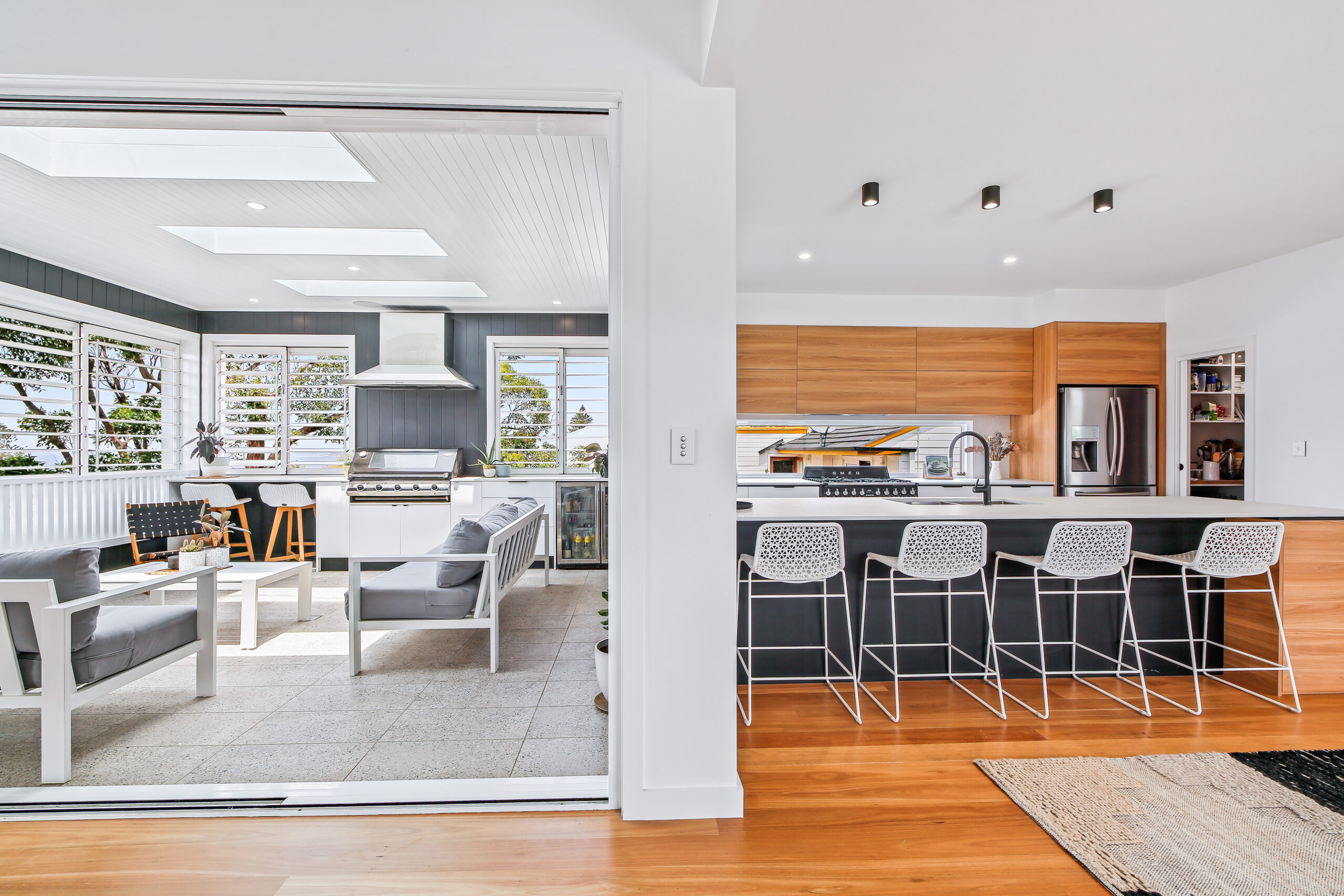 The Logia connects the inside to out with the 4.5 mt stacking glass doors from the Lounge and the glass cavity slider from the kitchen.