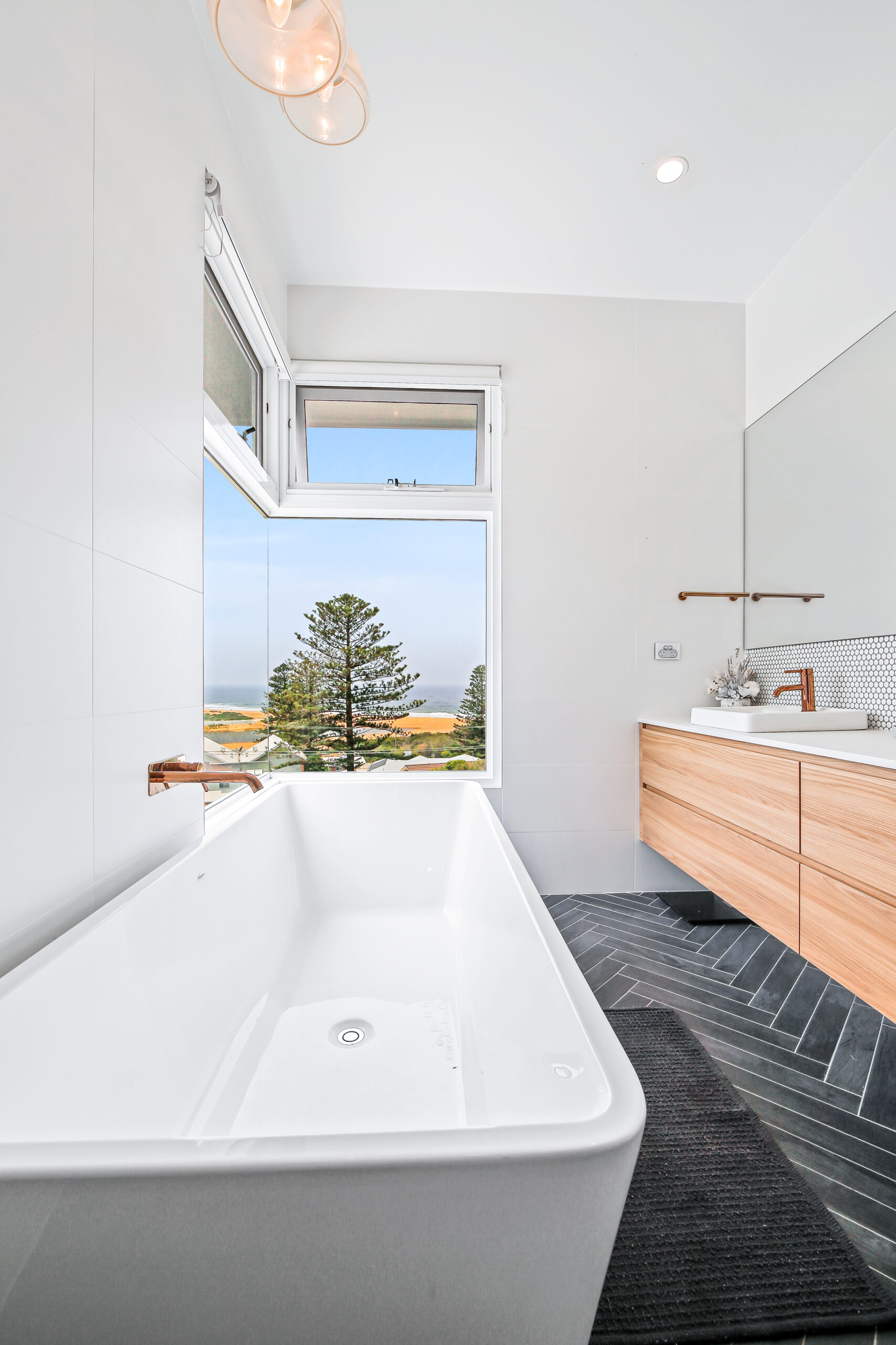 When slid back, the louvers give free access to the 180-degree water views along the beautiful Wamberal beach. Then when needed there is full control, by sliding the louvers closed you have the ability to open the shutters giving minimal obstruction of the view then closing the louvers for protection from the southerly weather and there is an extra room in the home.